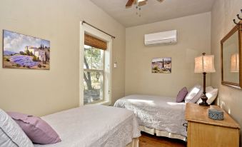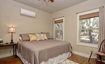 Welcome to the Mountain Laurel Cabin, an enchanting vacation rental nestled in the heart of Wimberley, Texas. This modern and stylish 2 bedroom cabin, designed for four, is perfect for couples or small families looking for hill country adventure. Located just a stone's throw away from the vibrant Wimberley Town Square and the serene Blue Hole Regional Park, the cabin's prime location sets the stage for an unforgettable Hill Country getaway. For larger groups, the sister cabins are also available: Morning Dove, Coyote Cabin, Desert Willow, Mockingbird, and Texas Sage, each providing accommodations tailored to your needs.