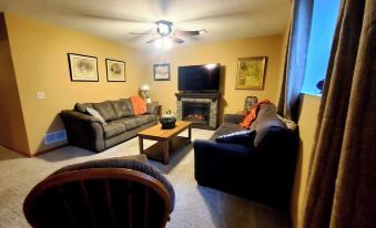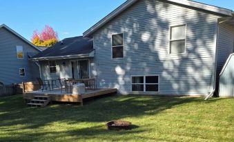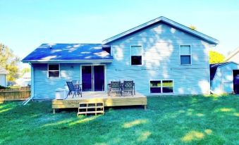 This newly remodeled house offers a welcoming space for up to 8 guests. Cozy up in front of the all-season electric fireplace with heat for when you want it! The spacious Dining Room has a desk for remote work, and a sprawling table for meals or board games. This multilevel charmer is minutes from Bypass 20, but offers the privacy of a residential subdivision. Get to I39 or I90 in a snap! The master bedroom features a kIng sized bed with a door directly into the main bathroom. The second bedroom offers a queen sized bed, and the third bedroom has a twin bed with a trundle bed tucked underneath. All of the bedrooms have their own smart TVs. There is a smart TV in the Dining Room, and a smart TV and DVD player in the living room, over the electric fireplace. In the living room level you will find a laundry area and bathroom. There is a deck in back with chairs and tables, overlooking the fenced back yard.About pets:No pets allowed.About checkOut:Check out before 10:00 AM.About children:Children allowed: ages 0-17.About customRules:No parties or events are allowed..Rental Agreement is required for all guests. Continuing to book indicates acceptance of Rental Agreement.,Note: there is an exterior security camera that covers the front door and front yard area..About checkIn:Check in after 3:00 PM.About smoking:Smoking is not permitted.About minBookingAge:Minimum age to rent: 25.About events:No events allowed.