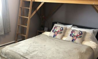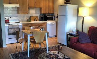 Must climb 2 flights of stairs but the view and quietness is worth the effort. This is non-smoking unit and no pets allowed or will loose your deposit. The fireplace is non functioning but electric fireplace to give it ambience.
