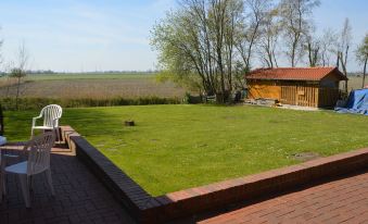 Das Ferienhaus war sehr groß und übersichtlich, es hatte einen schönen Garten der mit einem Zaun eingefriedet war. Das Haus war etwas abseits einer Landstraße ca. 60 Meter in einem kleinen Waldstück.In unmittelbarer Nähe war ein Kuhstall und ein Windrad von beidem ging aber keine Lärmbelästigung aus.