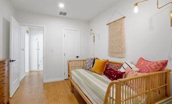This home boasts comfortable seating inside and out, flexible sleeping arrangements, VERY fast & free WiFi, and FULLY STOCKED KITCHEN for cooking and coffee in the morning. There is the brand new Amazon Fresh grocery store which you HAVE to check out less than 5 min away! Also, with perfect freeway access to the 101 Freeway which will take you to visit everything in and around Los Angeles.