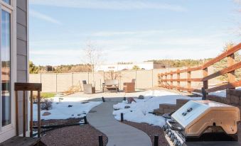 Outdoor Space: The large, private yard features breathtaking mountain views, a propane barbecue, comfortable patio furniture, and plenty of space for outdoor games.