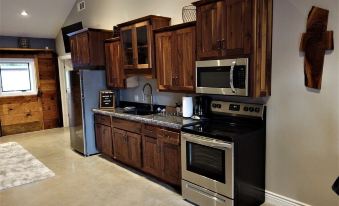 Enjoy the 25,000 pound outdoor stone Community bar beside the 7' gas fire pit. We have a magnificent 9'x125' stamped covered porch with Adirondack chairs. The entire Villa has a 7' tall x 1200' steel privacy fence with an amazing stone lighted entry gate. We have installed a heavy pipe fence to make a safe play area for kids and adults. A one of a kind feature in the building design has 6 inches of Spray foam insulation on all the exterior walls, 4" of interior wall insulation and solid core doors to eliminate the out door noise for a good nights sleep. The high-end mattresses are made in Kansas and the high thread count sheets are designed to keep you cool. The custom built hand made Amish beds were made from 6,000 pounds of Cherry wood from Ohio. The Amish hand crafted kitchen cabinets lumber was harvested in Missouri and built in Kansas. The massive custom built live edge walnut table was crafted in Kansas. The bathroom double bowl designer sinks were designed and poured in Kansas City. The bathroom has a bidet and urinal. The Artist was from Kansas City they painted 12'x9' mural they poured over 120 hours into each mural. The residence was built using the most efficient heating & air, 100% LED lights, automatic switches and preset Thermostat controls. The floors were polished to a 1200 glossy mirror like finish. The restored stables used as décor once held not so famous race horses in Tiffney Springs Missouri. We installed the best Wi-Fi available in the county and have Crystal UHD Samsung smart TV with Netflix, Apple TV, HULU, Prime Video and YouTube TV. The Kitchen is equipped with the essentials. We have a charcoal grill outside along with a Blackstone Griddle. String Lights are overhead in the evening, to sit by the Chiminea or the Propane Glass Fire Pit. About pets:No pets allowed.About checkOut:Check out before 11:00 AM.About children:Children allowed: ages 0-17.About checkIn:Check in after 4:00 PM.About smoking:Smoking is not permitted.About events:No events allowed.