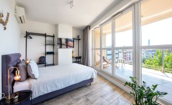 The apartment (on the 4th floor) is nice and location is perfect!!! (just 5-10 min walk to the main square) Large windows and balcony are a big bonus, we just love it! Very nice welcome surprise awaited us- local wine and lovely letter! 😍 The size of the apartment is good for 2 people. The bathroom and shower are also quite large, but very small bathroom sink, it is very uncomfortable to wash and the floor is wet all the time. The bed is a bit small and not the most comfortable. A small grocery store (Žabka) is only 1 min away and many cafes, bars, restaurants nearby. Almost everything we needed was there (hairdryer, iron, washing machine, dishwasher with tables, fridge with freezer, kettle, coffee machine with capsules, tea bags, pan, pots, dishes, various glasses, towels, TV and WiFi) We really missed Air conditioner!!! There are no high-quality hangers, only a few hangers in the wardrobe, which are of very poor quality (soft plastic). We missed kitchen towel, kitchen paper to dry hands and table. There is washing machine, but no laundry detergent. No disposable slippers for guest. … But all in all we were very satisfied! 🙏 Highly recommend! 😍