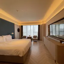Ответ от объекта размещения: 尊敬的賓客:您好!感謝您入住桔子水晶武漢金銀湖酒店。客房採用絲漣床墊,為客人提供優質睡眠,房間配有65寸電視,可享受高速上網、智能投屏,採用智能客控系統,房間配有冰箱、手沖咖啡、香薰晶石、電子秤等。我們秉承“常懷感謝之心,從顧客角度看問題”的原則,並堅持不懈地為賓客提供舒適的居住環境和親如家人的卓越服務。非常感謝您百忙之中抽出時間給我們用心的反饋,很高興得知您對此次入住感到滿意,能得到您的讚揚和肯定,我們倍感榮幸。祝您生活愉快!酒店總經理:毛宇