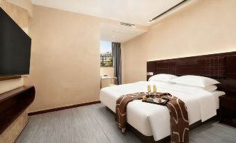 朋友訂的酒店 房間很大 設施齊全 衞生不錯 很乾凈 在周邊算性價比比較高的了 價格很實惠 前台服務熱情 辦事效率高 客房響應也很及時 酒店就在工業園路口 位置很好 交通方便 有自己的停車場 停車方便 周邊到了週末是真熱鬧 雖然不是主城區 但熱鬧程度差不多 吃的喝的都有 購物也方便 有機會再來住
