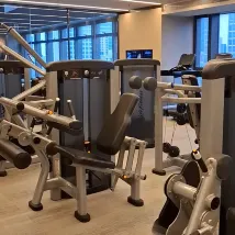 I pay attention to the gym l because I like to be able to unwind, relax and continue my gym workout when I travel. The gym is well equipped with dumbells and machine for chest, back and legs. There is even a swimming pool infront of the gym.
