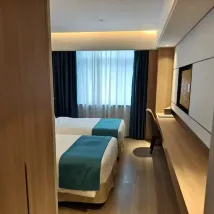 Я ставлю этому отелю высший балл! С того момента, как я вошёл в вестибюль, я был совершенно очарован. Персонал на стойке регистрации был дружелюбным и эффективным, а регистрация прошла за три минуты. Они также заранее порекомендовали близлежащие рестораны и парковку. Номер был безупречно чистым, постельное белье – мягким и удобным, а звукоизоляция – превосходной. Ночи были тихими, и я хорошо выспался. Завтрак был обильным, с полным выбором блюд китайской и западной кухни. Свежеприготовленные горячие блюда были восхитительны, и даже туалетные принадлежности были высокого качества. Расположение безупречное, с удобной транспортной развязкой и близостью к деловому району, что делает его идеальным как для деловых поездок, так и для отдыха. За всё время пребывания не было никаких нареканий, обслуживание было безупречным, а соотношение цены и качества – превосходным. Я обязательно выберу это место снова, когда приеду в следующий раз!