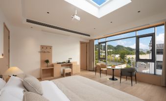 Some guest rooms are renovated from 300-year-old ancient houses. With a floor height of 4 to 8 meters, sunlight pours freely into the rooms. Matched with the "viewing frames" formed by the white walls and dark tiles, every window frames a flowing ink-wash painting of nature.