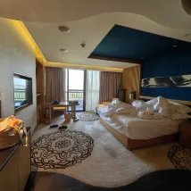 Обслуживание дворецкого было тёплым и внимательным; нам даже подарили подарок при выезде. Атмосфера тоже была очень приятной. К услугам гостей горячий источник, бассейн и тренажёрный зал. Номер, в котором мы остановились, был оформлен в морском стиле, с множеством картин и мультфильмов, что делало его идеальным для семей с детьми. Я обязательно привезу сюда своего малыша, как только появится такая возможность.