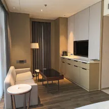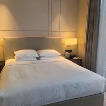 Дизайн номера довольно своеобразный, в стиле отелей Marriott, что, впрочем, неудивительно, учитывая, что это бренд Marriott. Персонал очень приветливый; зная, что мы туристы, они оставили в номере четыре бутылки воды – мелочь, но очень приятно и внимательно. Я забронировал три номера и попросил девушку на ресепшене расположить их рядом. Мне подтвердили, что так и будет, но по факту номера оказались хоть и на одном этаже, но довольно далеко друг от друга, что не очень удобно для семейного отдыха. Завтрак был очень разнообразным и обильным, с большим выбором блюд. Небольшим разочарованием стало то, что основные блюда практически не менялись, лишь изредка появлялись новые овощные позиции. Хотелось бы видеть больше разнообразия на станции с лапшой, которую готовят на заказ. Исполнительный лаундж отеля просто отличный – днем там можно выпить послеобеденный чай или кофе. Это большой плюс. С ресепшена на третьем этаже есть прямой выход в популярный книжный магазин по соседству, что очень удобно.