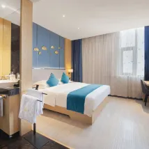 Эта деловая поездка в Сиань стала для нас прекрасным опытом проживания. Из номера открывался прекрасный вид, персонал ресторана был очень дружелюбным, завтрак был обильным и разнообразным, а еда – восхитительной – настоятельно рекомендую! Планировка номера была свежей, декор – особенно элегантным, и в номере было чисто, без запаха и пыли, что очень порадовало. Шкаф был очень удобным, и нам бесплатно повысили категорию номера. Скорость интернета была высокой, и было много каналов по телевизору. Это было отличное соотношение цены и качества. Ванная комната была хорошей, с отдельным душем и туалетом. Парковка тоже была очень удобной. Удобства были изысканными и высокого качества. Постельное белье было удобным и чистым, а также был выбор подушек на любой вкус. Расположение было отличным, с легким доступом к такси и общественному транспорту. Северо-Западный университет находится прямо по соседству. Большой палец вверх! Душ отличный, напор воды быстрый, кондиционер очень эффективный, и в номере очень тепло зимой. Ванная комната большая и чистая. Отель отлично справляется со следующими задачами: мощное отопление, чистый и гигиеничный интерьер, светлые и просторные номера с хорошим естественным освещением, а также спиртовые салфетки, что очень радует. Постельное белье чистое, номер и общественные зоны безупречны. Есть бесплатная прачечная, оборудование для которой тщательно дезинфицируется и содержится в чистоте. Персонал на стойке регистрации также очень приветливый; вас встретят по прибытии и предложат чашку горячего чая, что очень приятно. Здесь вы почувствуете себя в безопасности и спокойствии. Настоятельно рекомендую! Большой палец вверх!