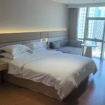 Я пошёл туда из-за хороших отзывов, но сам опыт был ужасным! Во-первых, в подземной парковке был только один грузовой лифт на верхние этажи, и в лифте всегда были кирпичи и тележки, что затрудняло перемещение багажа. Парковка также стоила 60 юаней в день, поэтому я очень не рекомендую останавливаться здесь, если вы за рулём! Во-вторых, как только я вошёл в номер, из крана не пошла горячая вода, и мне пришлось ждать техника, чтобы это починить. Экран проектора был расфокусированным, поэтому я ничего не мог чётко видеть, и мне пришлось ждать, пока сотрудник стойки регистрации поднимется с 6-го этажа на 30-й, чтобы восстановить фокусировку... Мне было лень ждать. В конце концов, когда я выезжал, грузовой лифт перестал работать, так что я вообще не мог дотащить свой багаж до парковки! Мне пришлось ждать, пока лифт восстановят, прежде чем я смог уехать... Это был действительно разочаровывающий опыт.