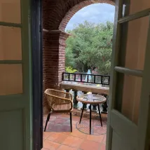 Он довольно большой, и снаружи есть небольшой балкон. Утром не будет слишком жарко. Определенно приятно посидеть на улице и поболтать, когда погода не жаркая.