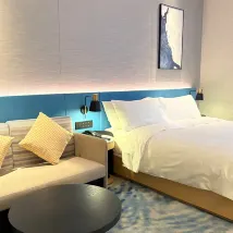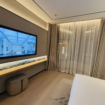 Отель очень новый и расположен над аутлетом, недалеко от моря и древнего города Синчэн. Транспорт удобный, парковка бесплатная. Комната относительно большая, вид из эркера красивый. Пол с подогревом в комнате очень теплый. Зимой вполне нормально. Ночью тихо и спокойно.