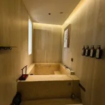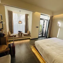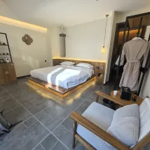 A place that allowed us to rejuvenate and sleep well! It has a hot spring tub in the room. Bed is a king size bed. Toilet has a sewer smell though, so that is one minus point. Service is awesome. Service staffs were helping us to bring our luggage down and up the car. They also helped navigate our car into the old city. We appreciate the free snacks and arrival drinks. The disposable toothbrush is surprisingly usable. The location is near to food street; the staff will gladly direct you to it.