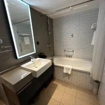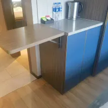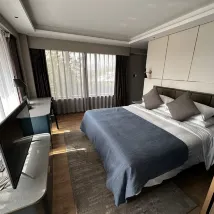 Обстановка в отеле очень хорошая. Вокруг есть коммерческая зона. Это видно из комнаты. Тапочки и фен в номере немного спрятаны. Также есть складной стол. Комната немного маленькая. но все очень полно.Персонал на стойке регистрации очень хороший. Регистрация была немного громоздкой и требовала подписи. Служба поддержки также позвонила нам, чтобы узнать, во сколько мы приедем, и организовала более тихий номер, которым я был очень доволен. мое пребывание.