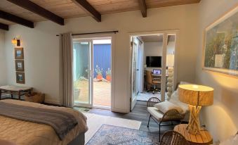 Dedicated remote work area: A quiet office space with large monitor, printer, and direct access to a serene courtyard — perfect for focus and inspiration.