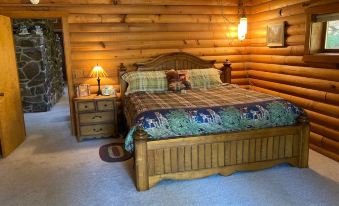 For music enthusiasts, the den/music room is equipped with various instruments, including guitars, a theremin, electronic drums, and synthesizers. The lodge also offers unusual musical instruments, providing a delightful musical experience. Guests are encouraged to explore their musical talents and enjoy spontaneous jam sessions. The acoustics of the log construction provide a unique sound quality, making music a central part of the lodge experience.