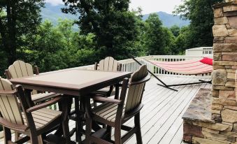 Main level: Bedroom #2 - Queen Bed with full bathroom; living room; dining room; spacious kitchen; 1/2 bathroom, fireplace; balcony with breathtaking views of Mt. Mitchell.