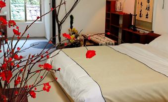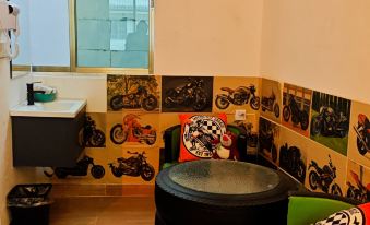 The homestay has various room styles. There's "Moxiangju" with the elegance of plum blossom calligraphy, "Qiji Ju 318 Motorcycle - Themed Room" full of motorcycle coolness, and "Ruyiju" with persimmon tree elements, meaning everything goes well.