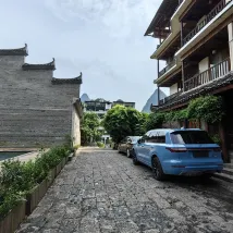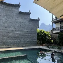 Отель расположен недалеко от реки Ли, в красивой и тихой обстановке. Внутри также есть бассейн и детский бассейн с волнами, который подходит для путешествий родителей и детей. Персонал был очень внимательным. В тот день он даже организовал для нас машину, чтобы отвезти наш багаж и забрать нас в живописном месте, чтобы сесть на скоростной поезд. Босс был очень приятным.
