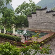 Комната оформлена в классическом китайском стиле, гигиенична и чиста. В окружающих старинных деревнях царит красивая природа и тишина. Это хорошее место для отдыха.