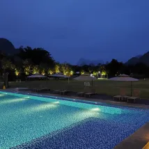 Губернатор тянется до самого берега реки Юйлун, органично вписываясь в окружающий ландшафт. Лежа на газоне, наблюдая за проплывающими облаками и горными вершинами, отражающимися в небе, вы почувствуете себя так, словно ни один крытый бассейн или бар не сравнится с ним. В отеле есть три больших открытых бассейна.