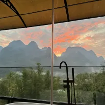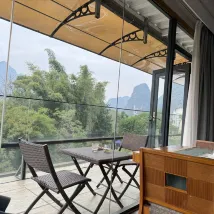 Вид из окна комнаты просто невероятный 😍 Персонал очень вежливый и отзывчивый , приятный . В номере есть все удобства , бассейн . Завтрак включен( предлагают попробовать гуйлиньскую рисовую лапшу) Недалеко (в 10 минутах пешком) есть бамбуковый рафтинг по реке. Очень рекомендую этот отель!!!