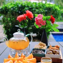 Прямо перед рестораном есть сад и бассейн. Я взял послеобеденный чай и позавтракал у бассейна в саду. Это было богато и вкусно, еда + красивые пейзажи, и я чувствовал себя прекрасно?