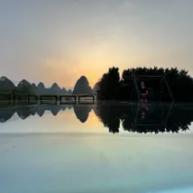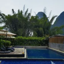 Нам очень понравилось здесь оставаться. Наш номер был огромным, а также очень удобным и красивым! Из отеля открывается великолепный вид на горы, он находится прямо на берегу реки Ли, поэтому можно легко забронировать лодочные туры. Сервис был выдающимся. Они предлагают поездки в близлежащие места, что очень удобно. В целом мы прекрасно провели время!