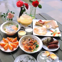 Свяжитесь с командой за день заранее, и трансфер на станции высокоскоростной железной дороги, пирсе и древнем городе будет доступен в соответствии с графиком. Завтрак, послеобеденный чай, барбекю или поздние закуски бесплатны и вкусны, а заказанные блюда тоже вкусны. Цветы в саду цветут, комната очень чистая и атмосферная. Я очень рекомендую.