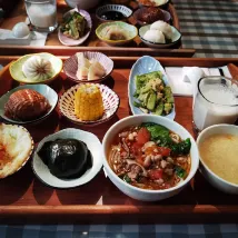 Питание: Если вы останетесь на 3 дня, завтрак изменится. Есть местные особенности камелии Чжуансян, а также приготовленные на пару булочки и закуски с фруктами. Есть также свежеприготовленная лапша. Если бы только кофе был лучше.