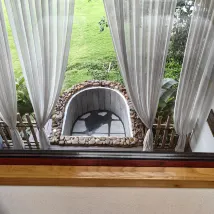 Из отеля открывается прекрасный вид на горы. Частный суп тоже очень хорош. Также есть барбекю на 1, 3, 5 и 5 человек.