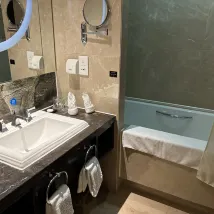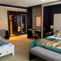 Родительско-детский люкс относительно большой и подходит для проживания с пожилыми людьми и детьми. Двойная ванная комната и гардеробная. В двух комнатах есть двуспальная кровать и комната с кроватью размера «queen-size» соответственно. Хотя последние два года здесь не проводился новый ремонт, номер очень чистый, а удобства содержатся в хорошем состоянии.