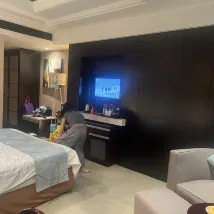 Комната: она была переоборудована из оригинального люкса. Между комнатами большой промежуток, и вы можете ясно видеть следующую комнату. Прикроватная розетка в гостиной очень неудобна. Чтобы воспользоваться прикроватной розеткой, в обеих ванных комнатах нет окон и пахнет канализацией. Кроме того, в гостиной плохо работает кондиционер. разговаривая с администратором, улучшений не было. В комнате было очень душно, стоял странный запах, и мне пришлось открыть окно для проветривания.