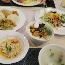 Ресторан: Завтрак относительно разнообразный, блюда добавляются вовремя, вкус хороший. Что особенно хорошо, так это то, что завтрак открыт до 10:00 и в каждой кастрюле есть блюда. Это хорошо, но немного. рабочая одежда официантов слишком грязная.