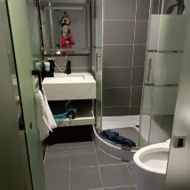 Отель очень удобно расположен, с хорошей транспортной доступностью. Он чистый, аккуратный, в ванной комнате есть сухое и влажное зонирование. В номере имеются бутилированная вода, одноразовые накладки на унитаз, одноразовые тапочки и туалетно-косметические принадлежности. Номер расположен на первом этаже жилого дома, с ковровым покрытием. Однако душевая кабина в ванной комнате снизу плохо герметизирована, и после душа вода просачивается на пол.