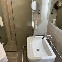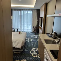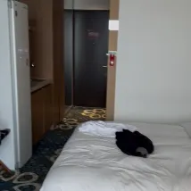 Номер просторный, с хорошим видом. По ошибке забронировал номер без каркаса кровати, и на ресепшене очень помогли с заменой на другой. В номере есть стоячая стиральная машина. Все хорошо.