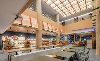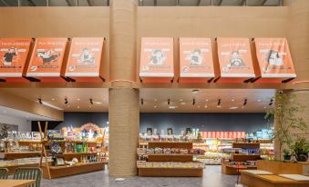 一樓大廳特別乾淨舒服,很像文創店,有很多吃的可以買,還有座椅可以坐,房間安靜整潔,空間特別大,廁所乾濕分離,位置去哪裡都方便