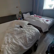 2 single beds room a bit small but overall are ok.mosquito made me sleep not well, that is may be due to window open...。。。