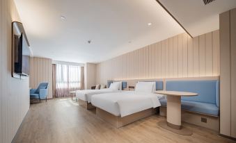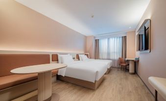 Hanting Hotel Yinchuan Huaiyuan Night Market Xixia Wanda - A Cozy Haven for Travelers Hanting Hotel Yinchuan Huaiyuan Night Market Xixia Wanda is an ideal place to stay during a busy journey, showcasing quality and care in every detail. The hotel is located on Huaiyuan East Road, Xixia District, Yinchuan City, occupying an excellent geographical position. It is closely adjacent to the bustling Huaiyuan Sightseeing Night Market and the prosperous Xixia Wanda. The surrounding supporting facilities are complete, with a plethora of shopping, entertainment, and dining venues scattered around, satisfying your diverse needs at any time. Transportation is extremely convenient. The BRT rapid bus at the hotel entrance provides convenience for your urban travels. It is only about 3.9 kilometers away from Yinchuan Railway Station, and you can reach it in just about 10 minutes by car. Even if you are heading to Yinchuan Hedong International Airport, there is no need to worry about the long distance. When you step into the hotel, 76 exquisitely designed guest rooms are waiting for you. The rooms are clean and tidy, with a novel and fashionable decoration style. The soft and comfortable beds ensure you a good night's sleep. The independent bathrooms are well-equipped, giving you a private personal space. The smart toilets reflect the integration of technology and comfort. The free high-speed WIFI covers the entire area, meeting your need to be online at any time. Every detail is dedicated to bringing you a pleasant accommodation experience. The restaurant on the 6th floor prepares a variety of delicious foods for you, starting your day full of vitality. The laundry room next to it is equipped with a dryer and an ironing machine, and mineral water is also provided thoughtfully, making it easy for you to take care of your clothes. The elevator, luggage storage, and 24-hour front desk comprehensively ensure your convenience and safety. There are also many wonderful attractions nearby. You can walk 600 meters and immerse yourself in the lively atmosphere of Xixia Huaiyuan Everbright City. Here, there is a wide variety of delicious foods, specialty snacks, and exquisite handicrafts. Wanda Plaza (Yinchuan Xixia Store) is only 501 meters away from the hotel, which is a great place for you to shop, enjoy delicious food, and relax. Ningyang Plaza, about 737 meters away, is also a comprehensive commercial plaza integrating shopping, dining, and entertainment, filling your leisure time with fun.