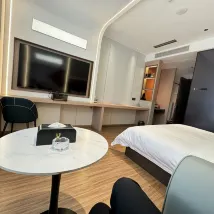 В отеле очень комфортно. Обстановка очень приятная. Леди, которая регистрировалась на стойке регистрации, очень профессиональна и обладает сильным чувством обслуживания. Парень у двери теплый и заботливый. Удобства в номере хорошие. -Очень новый и очень хороший.Очень умный и гигиеничный.Спальная комната была обновлена.В номере очень большое и очень удобное место для работы. Раньше останавливались очень маленькие. Стиль оформления этого отеля очень вертикальный, это мой любимый стиль. Фрукты также дарят в подарок, фрукты вкусные, обслуживание лучше, чем в четырехзвездочном отеле. робот для доставки еды. Это очень удобно. Я очень доволен своим пребыванием, особенно рядом со станцией скоростной железной дороги, мне не нужно вставать слишком рано, чтобы взять такси и прогуляться несколько минут. Здесь много мест, где можно поесть. В отеле есть сытный и разнообразный завтрак. Еще есть кофе, я вернусь в следующий раз!