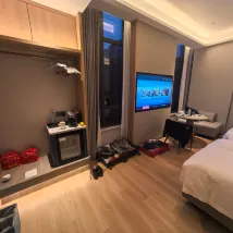 Номер в отеле чистый и гигиеничный, в номере установлены умные автоматические световые шторы. Отель расположен рядом с горным лесопарком Лунбэй. Вы можете посетить этот огромный лесопарк в нескольких шагах. Рядом с отелем находится ресторан Xin Furong Yixing, открытый тем же владельцем. Здесь очень удобно завтракать, и завтрак тоже хороший. Цена отеля превзошла все ожидания. Рекомендуется остаться.