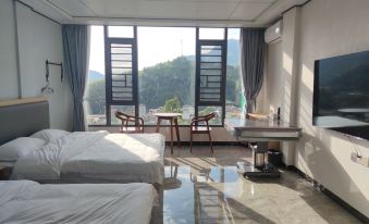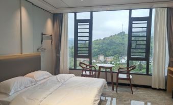 入住前在前一個景點耽誤了很久,所以很晚才過去,過去莽山景區一路上都烏漆麻黑的幾乎見不到車和人,連房子都沒有,車上4個人都挺害怕的,在快到的時候在前面路段看到有民宿都挺害怕,方圓幾裏很多路段就一棟房子周圍荒無人煙的,生怕訂的就是那棟。還好後來到了這,見到周邊燈火通明的,就沒那麼害怕了。來到時11點多很晚了,想着四個人輪流用一個浴室又要等熱水器加熱得很晚才能睡,又找老闆借用多一個浴室才比較快搞定。所以女孩子來莽山景區這邊,最好不要太晚過來,也不要訂那種太偏,周圍沒人的民宿。這個酒店離莽山國家森林公園很近,周邊有不少房子和餐飲店,價格很划算,房間也乾淨,就是這個天氣來比較冷,開暖氣蓋了被子也略冷。房間有個落地窗對着大山,風景好,這個價錢值了