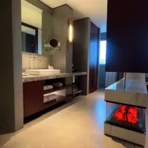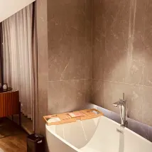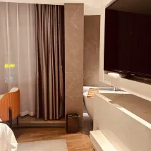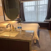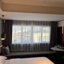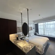 Мы впервые останавливались в этом отеле, и нам предоставили номер с ванной, что было просто здорово! Я должен дать хороший отзыв. На самом деле комната выглядит лучше, чем на фотографиях. Планировка очень разумная. В комнате большие окна от пола до потолка, большое зеркало для макияжа с регулировкой освещения и фен в специальном ящике! Очень качественно, чисто, гигиенично, есть также очень большая ванна, где можно фотографироваться и регистрироваться, а также просторная парковка, соотношение цены и качества очень высокое!