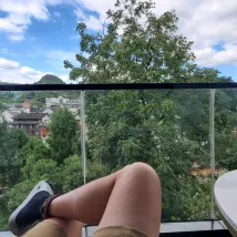 Терраса достаточно просторная, с сушилкой для белья и прекрасным боковым видом на живописную местность.