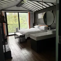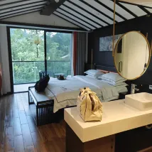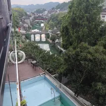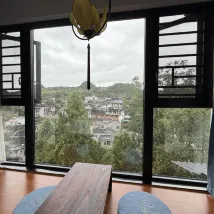 Хозяйка забрала нас с вокзала в оговоренный заранее срок, была очень любезна и всячески пыталась помочь. Номер был чистый с выходом к бассейну, не очень большой, но на 2 ночи достаточно. Хорошая сантехника, умный унитаз. Хорошее освещение, электронное управление шторами. Вид на деревню и реку потрясающий. Завтрак готовят при тебе на кухне, там же находятся столы для приема пищи. В первый день предлагали варёную лапшу или пельмени, на второй была очень вкусная жареная лапша с яйцом. Также на завтрак были цзяоцзы, баоцзы и яйца. Обратно хозяйка тоже отвезла нам на вокзал по первой просьбе и мы успели за 10 мин. На поезд ).