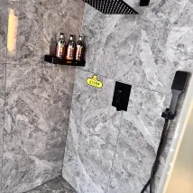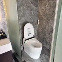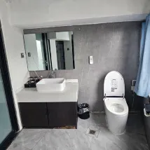 Ванные принадлежности были чистыми и опрятными, в душе было много горячей воды. Вытяжка не имела запаха, а стильный умный туалет был настоящим плюсом.