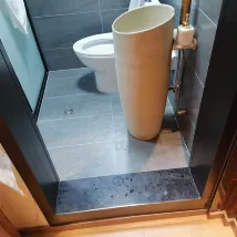 Главный минус номера - отсутствие двери в туалет. Унитаз от спальни отделяет штора. Но у душевой есть нормальная раздвижная дверь.